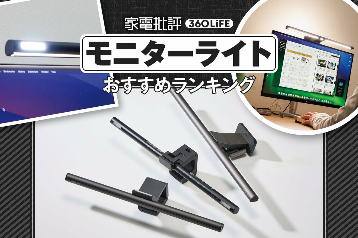 | ScreenBar Halo・BenQ | ・約500ルクスに自動調光 ・3つの照明モード ・無線リモコン ・通常ディスプレイにて厚さ0.7~6cmまで対応 | 製品単体での調整はできず、リモコンが必須です。 単体コストは約¥6,000でした。 |